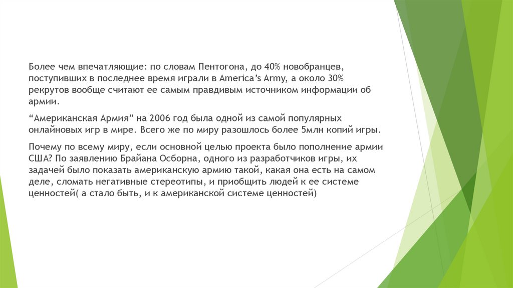 Более чем впечатляющие: по словам Пентогона, до 40% новобранцев,поступивших в последнее время играли в America’s Army, а около 30%