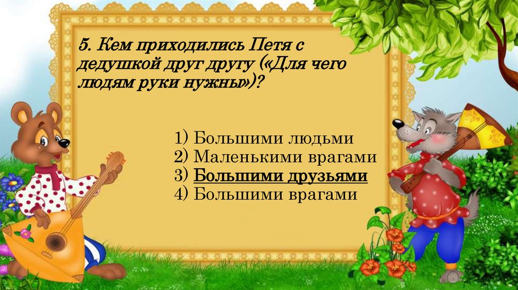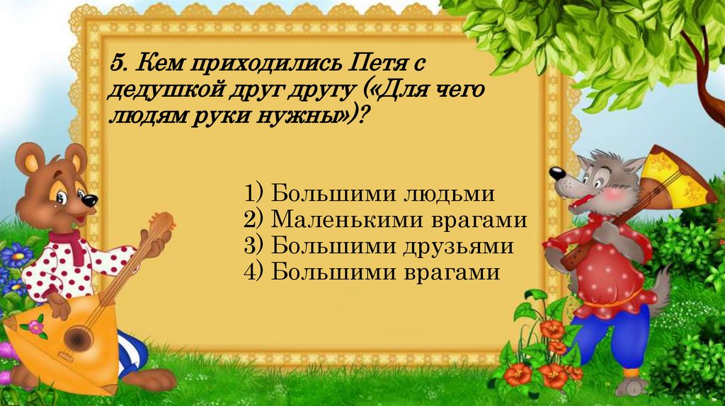 5. Кем приходились Петя сдедушкой друг другу («Для чего