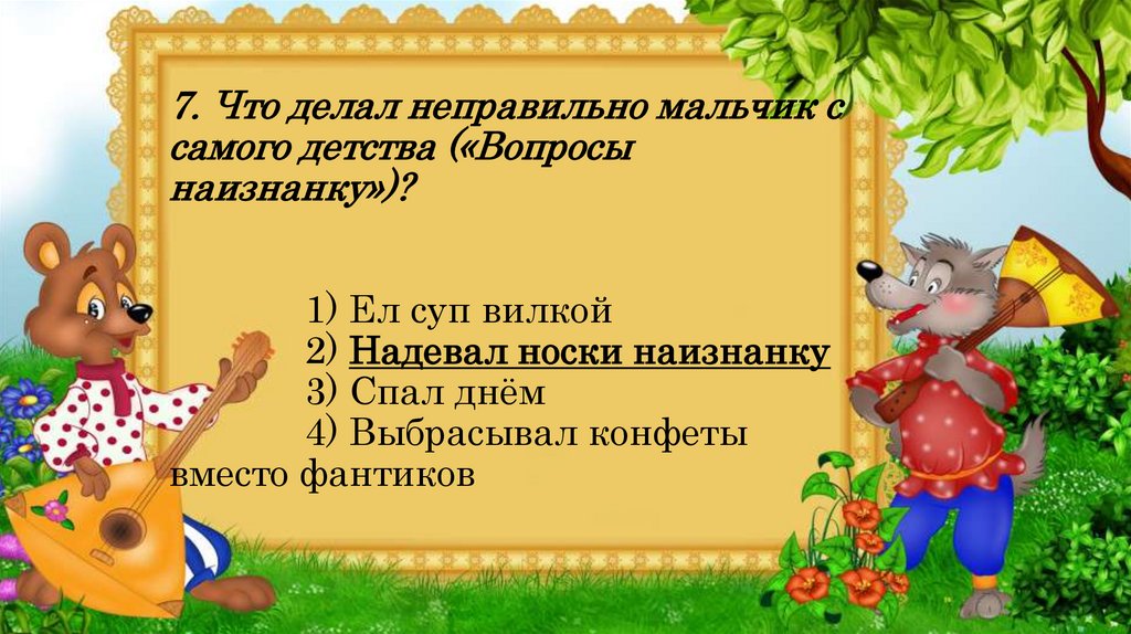 7. Что делал неправильно мальчик ссамого детства («Вопросы