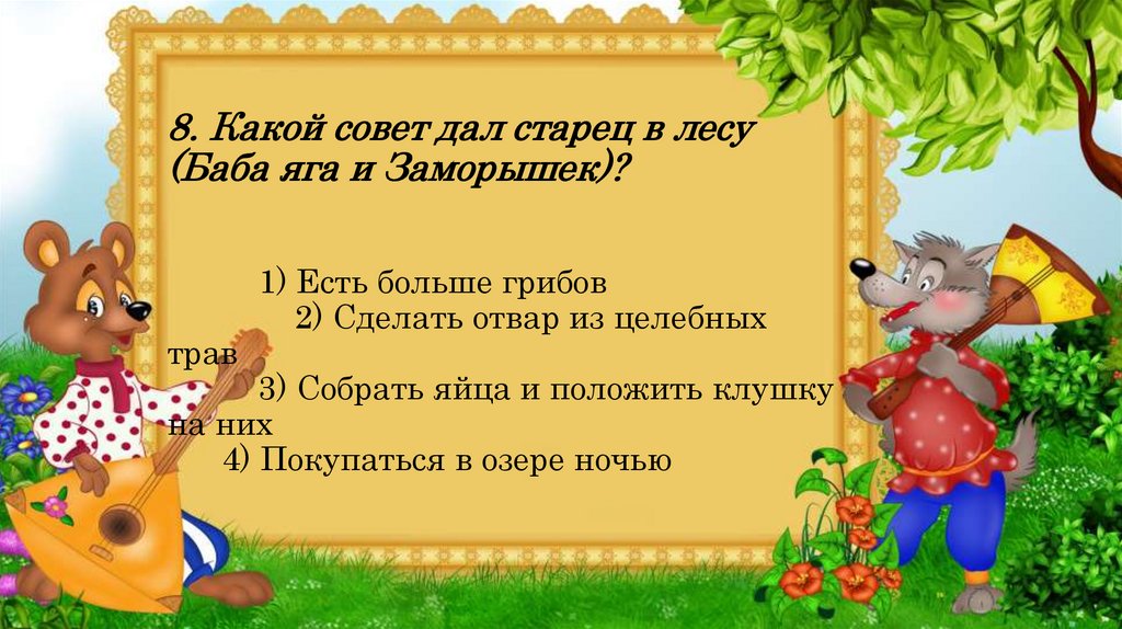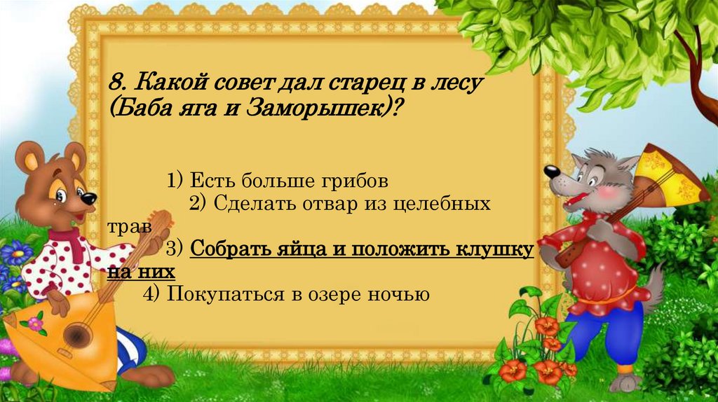 8. Какой совет дал старец в лесу(Баба яга и Заморышек)?
