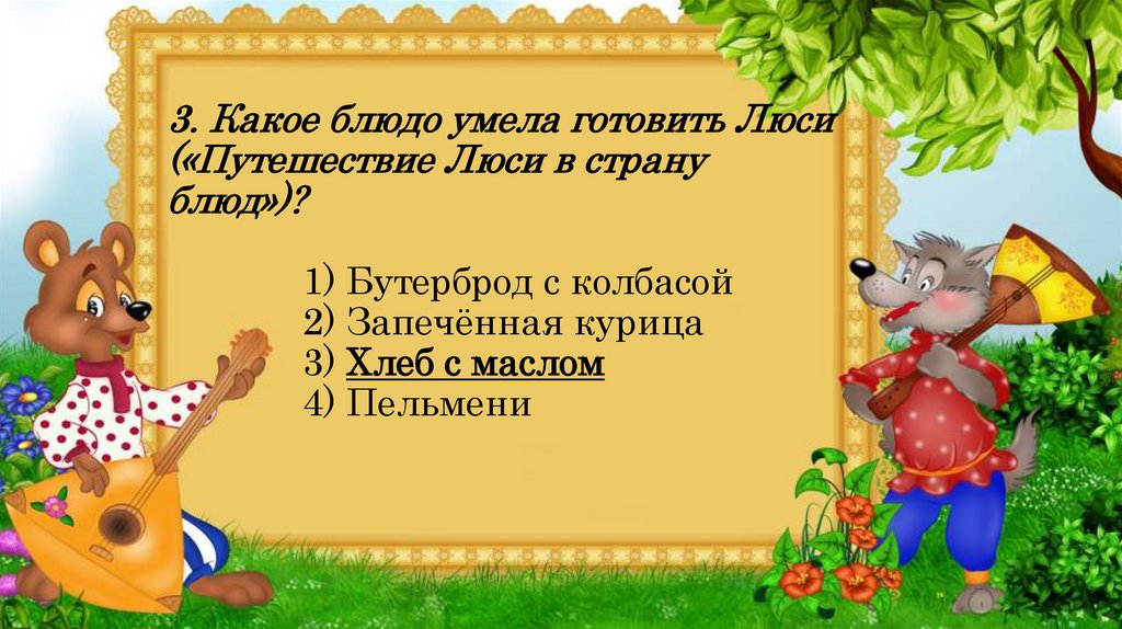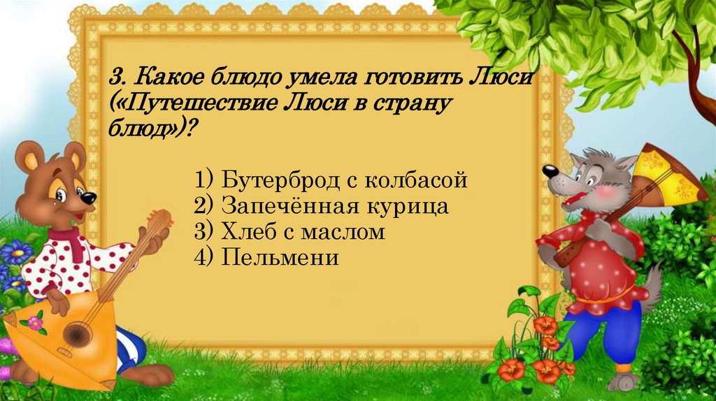 3. Какое блюдо умела готовить Люси(«Путешествие Люси в страну
