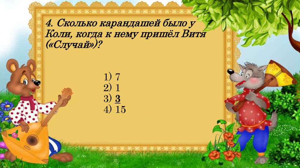 4. Сколько карандашей было уКоли, когда к нему пришёл Витя