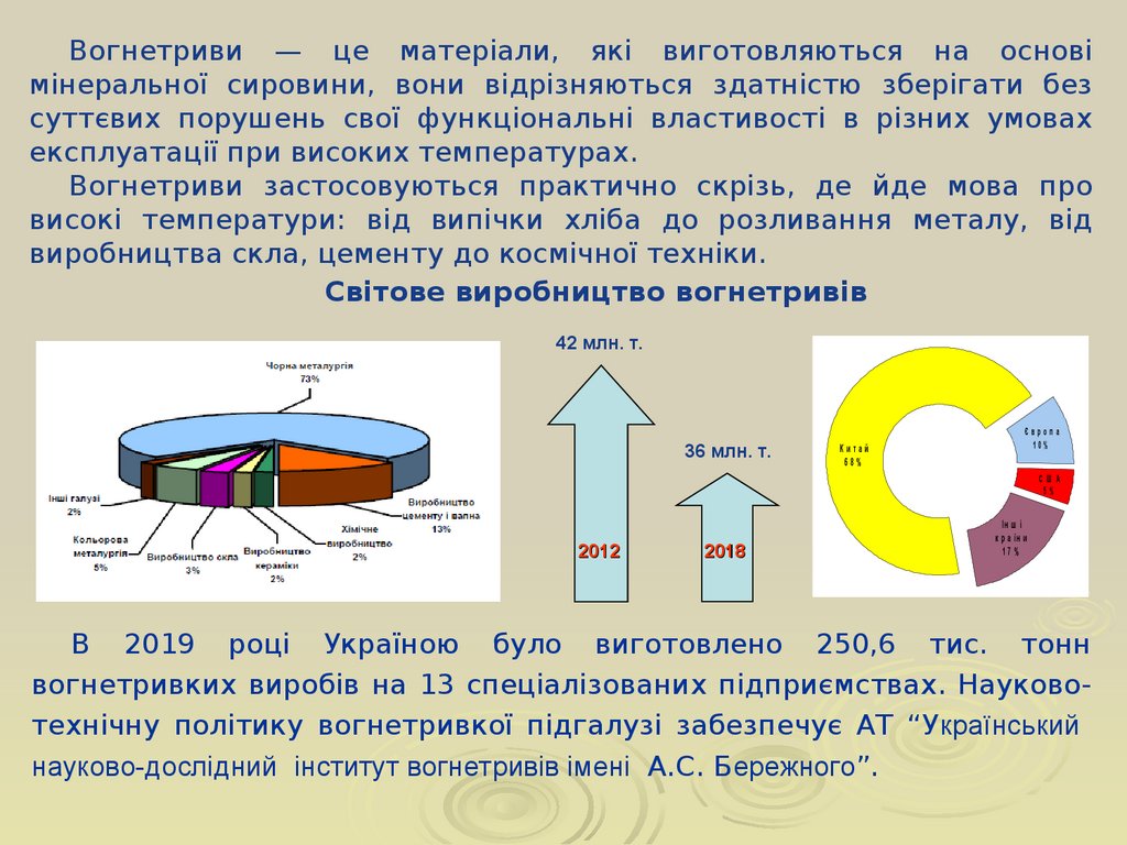 вогнетривких виробів на 13 спеціалізованих підприємствах. Науковотехнічну політику вогнетривкої підгалузі забезпечує АТ “Український