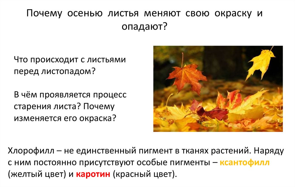 Почему осенью листья меняют свою окраску иопадают?