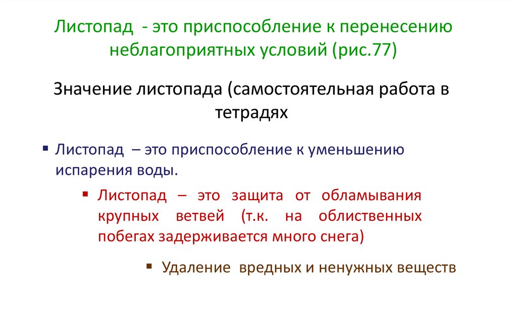 Листопад - это приспособление к перенесениюнеблагоприятных условий (рис.77)
