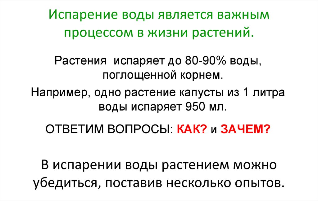 Испарение воды является важнымпроцессом в жизни растений.