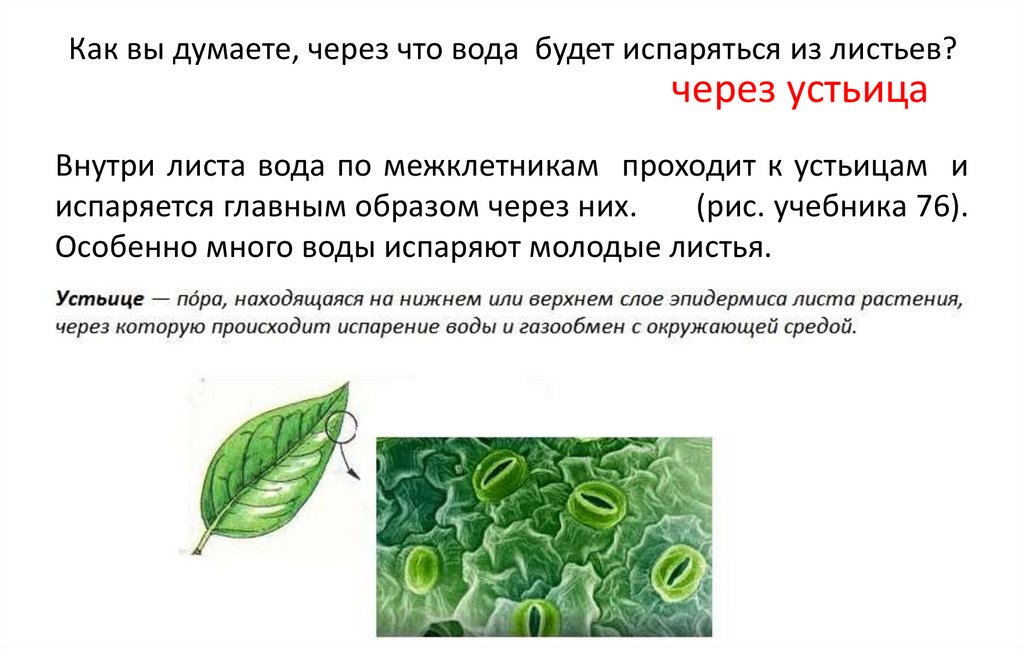 Как вы думаете, через что вода будет испаряться из листьев?через устьица