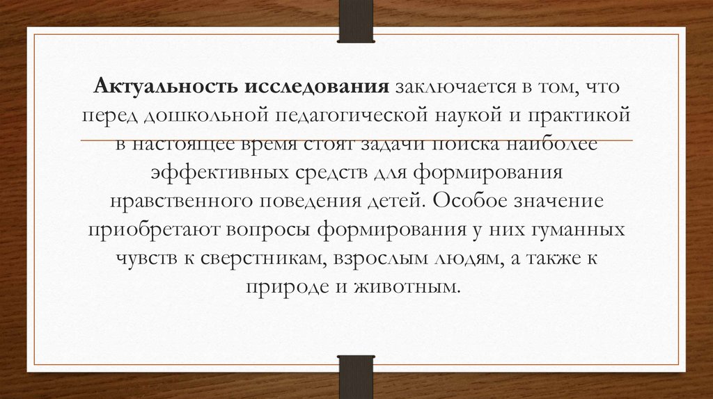 Актуальность исследования заключается в том, чтоперед дошкольной педагогической наукой и практикой