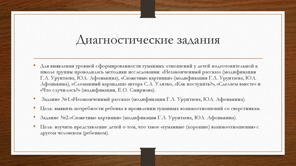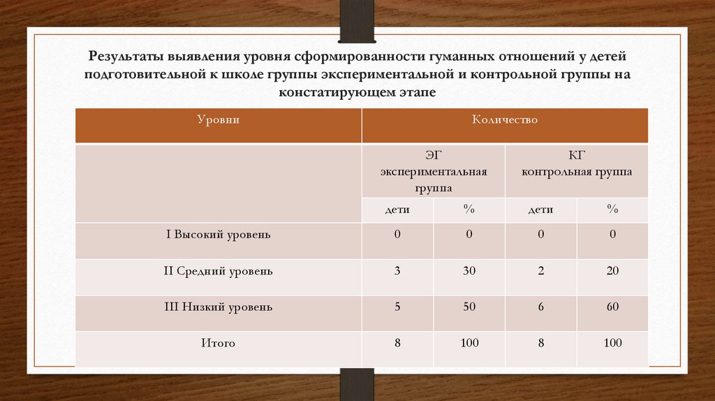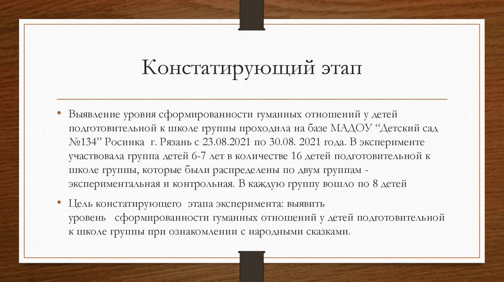 • Цель констатирующего этапа эксперимента: выявить
