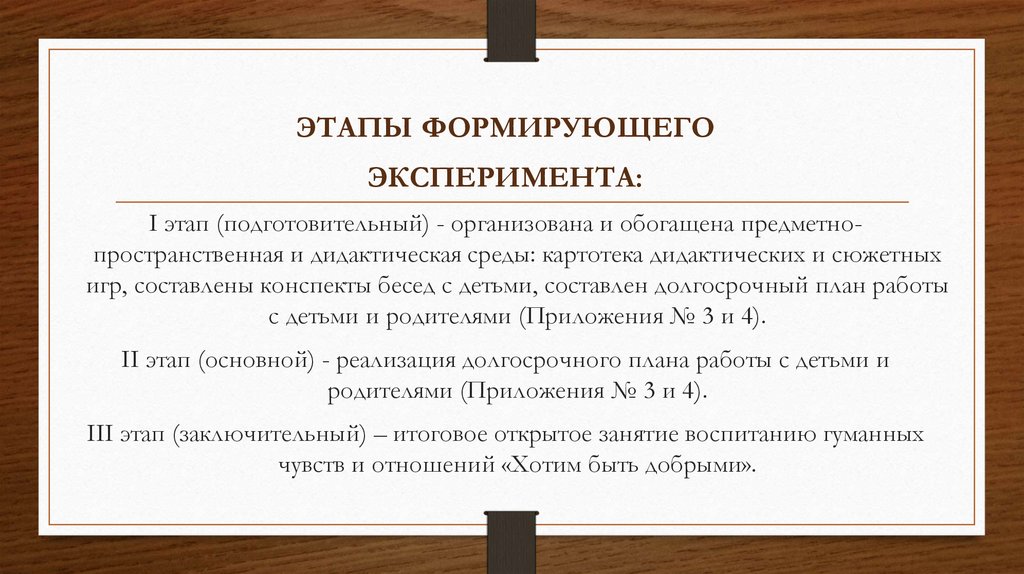ЭТАПЫ ФОРМИРУЮЩЕГОЭКСПЕРИМЕНТА: