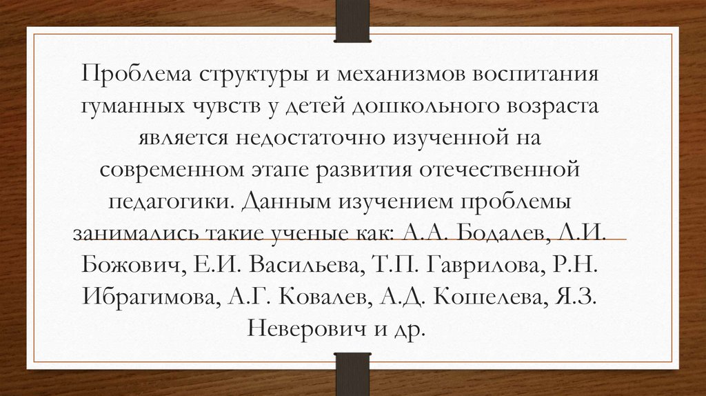 Проблема структуры и механизмов воспитаниягуманных чувств у детей дошкольного возраста