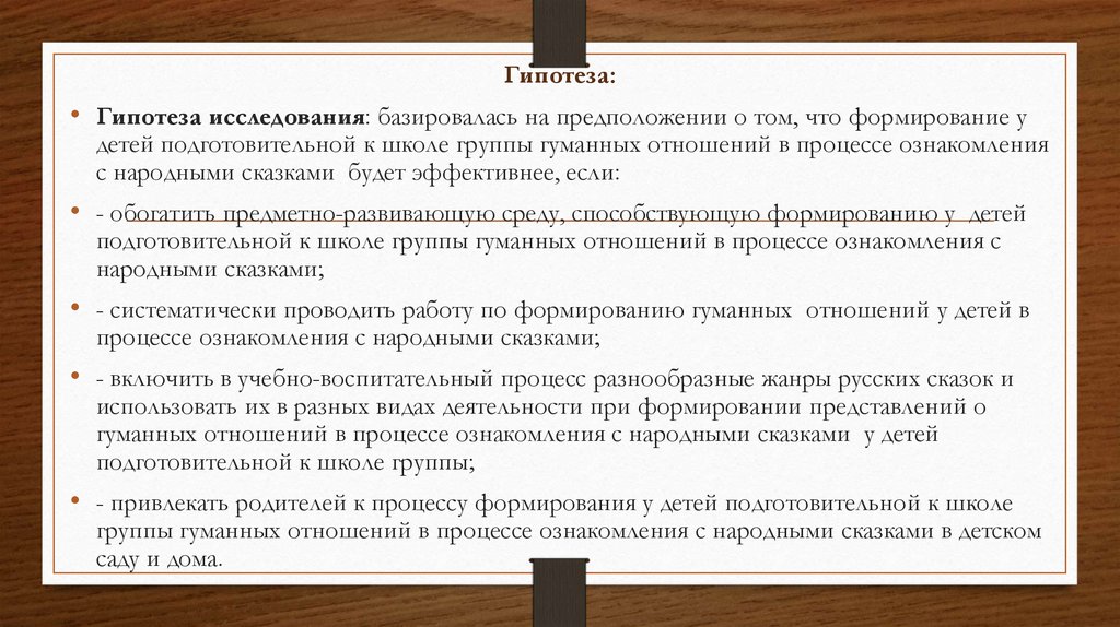 Гипотеза:• Гипотеза исследования: базировалась на предположении о том, что формирование у