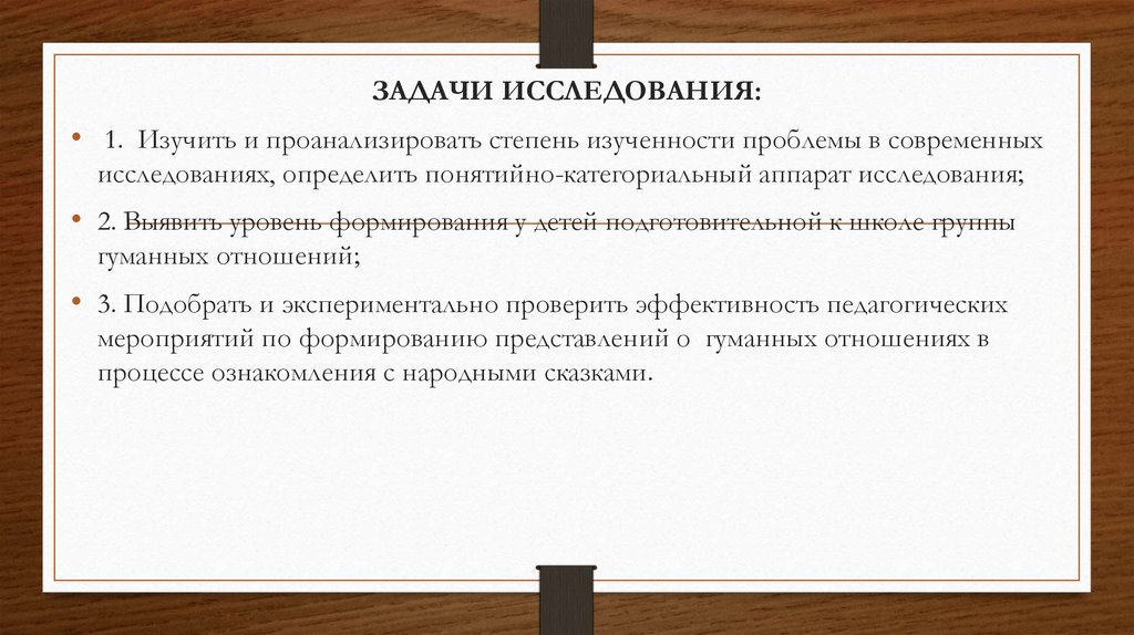 ЗАДАЧИ ИССЛЕДОВАНИЯ:• 1. Изучить и проанализировать степень изученности проблемы в современных