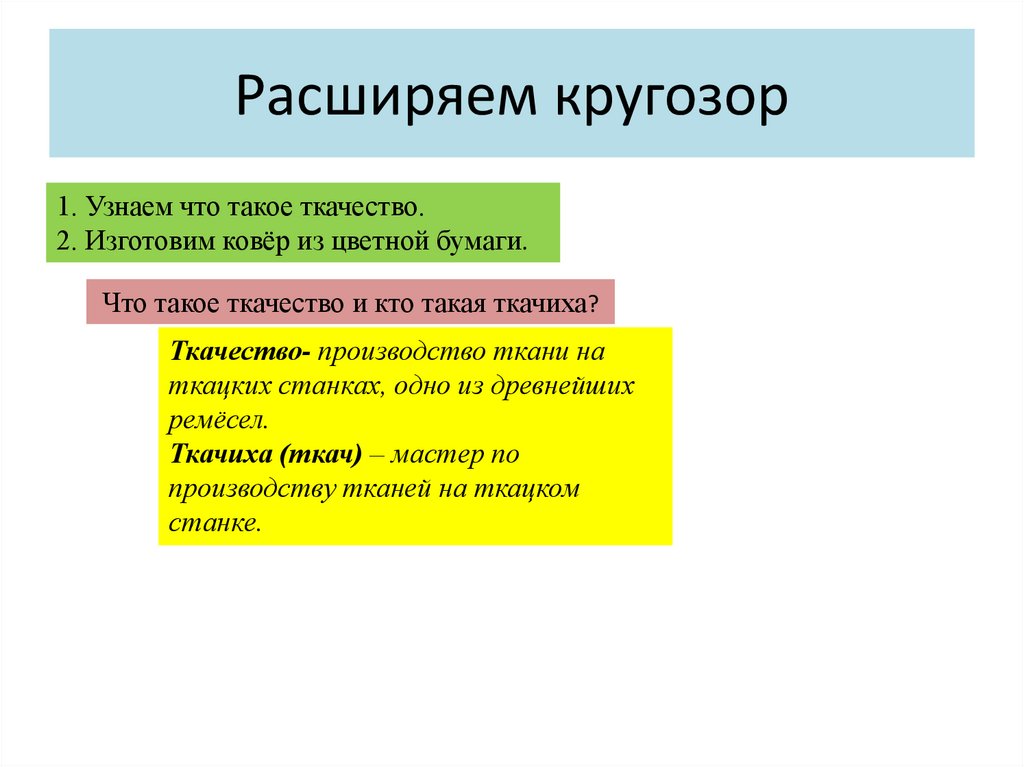 Расширяем кругозор1. Узнаем что такое ткачество.