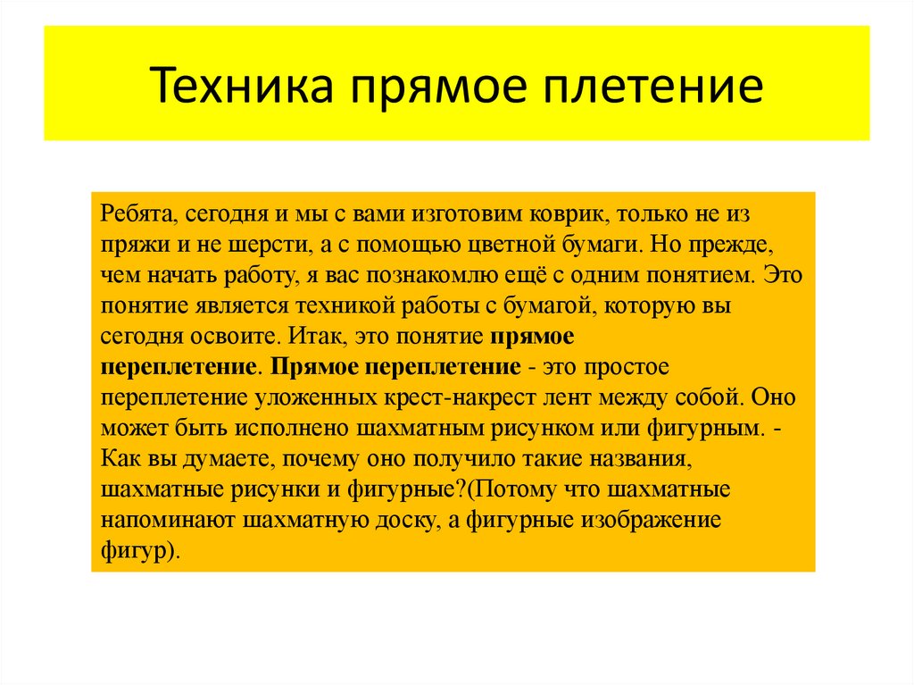 Техника прямое плетениеРебята, сегодня и мы с вами изготовим коврик, только не из