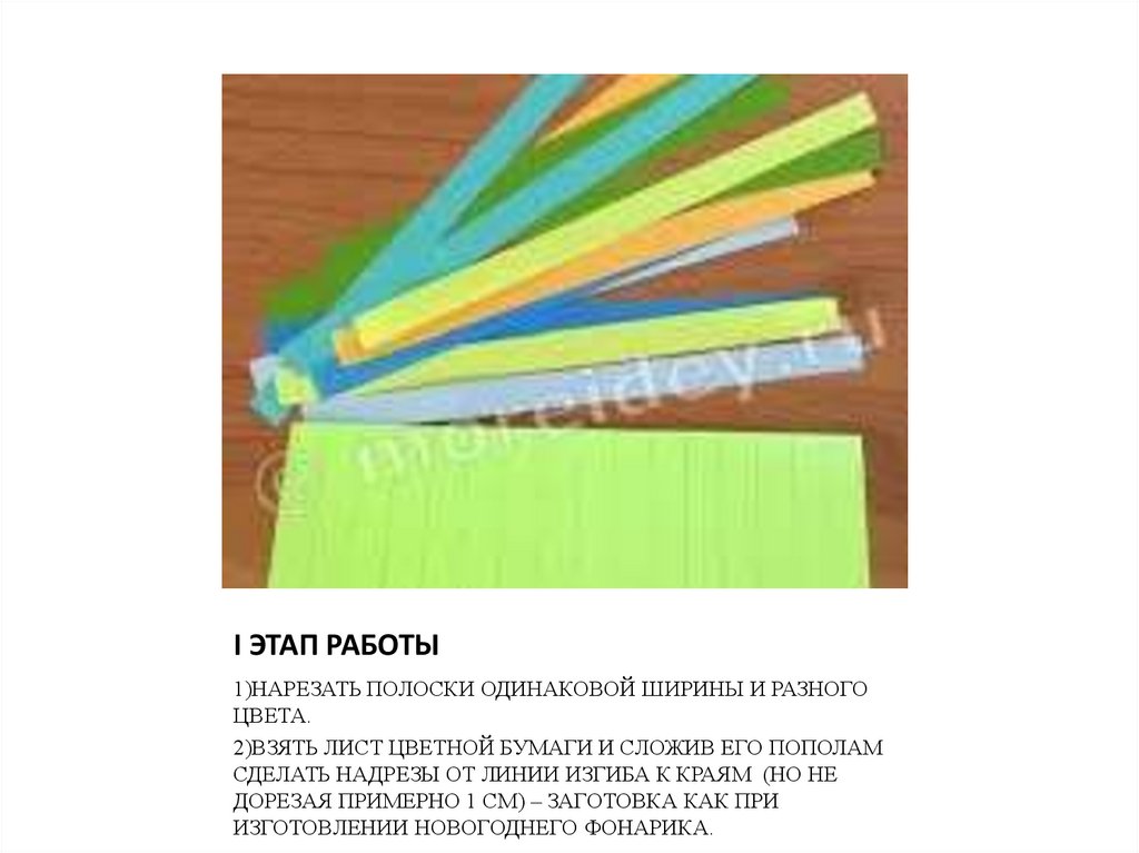 I ЭТАП РАБОТЫ1)НАРЕЗАТЬ ПОЛОСКИ ОДИНАКОВОЙ ШИРИНЫ И РАЗНОГО