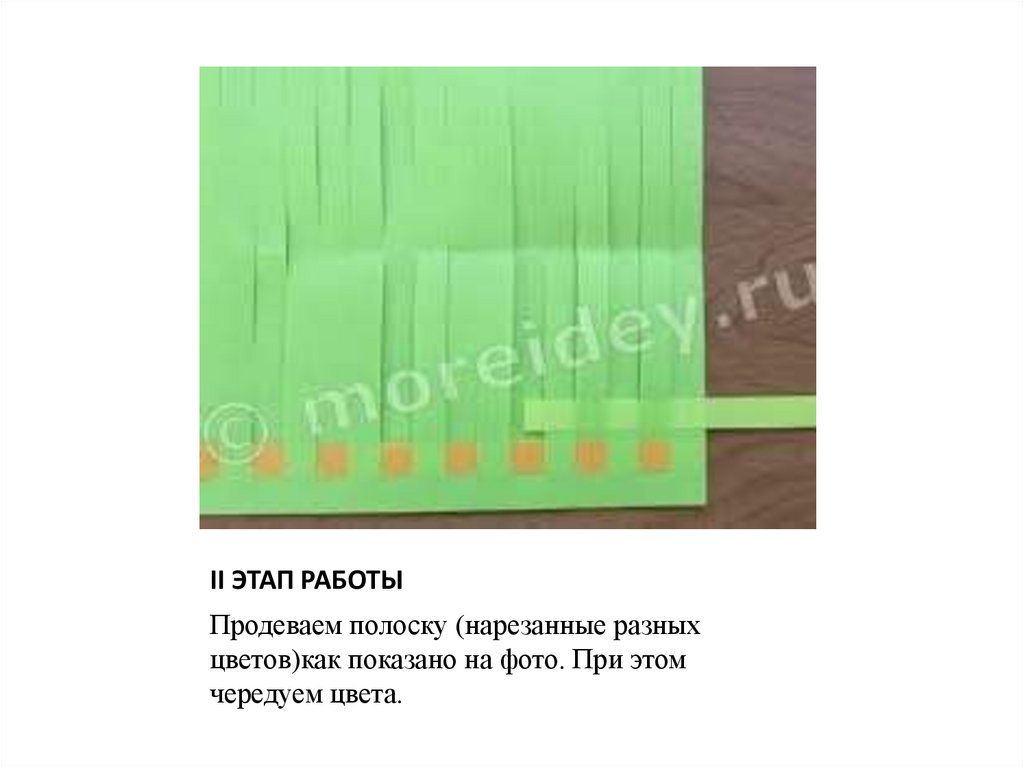 II ЭТАП РАБОТЫПродеваем полоску (нарезанные разных