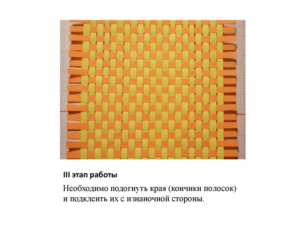 III этап работыНеобходимо подогнуть края (кончики полосок)
