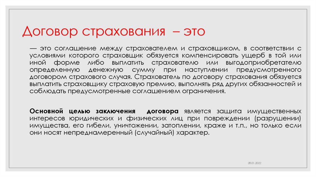 Договор страхования – это— это соглашение между страхователем и страховщиком, в соответствии с