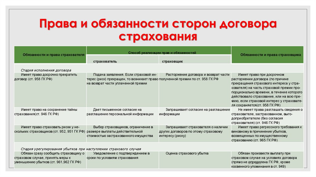 важное правовое значение в страховых правоотношениях, в процессе реализации