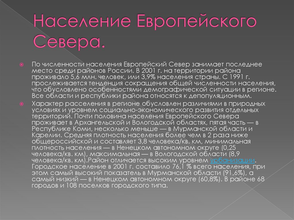 территорий. Почти половина населения Европейского Севера