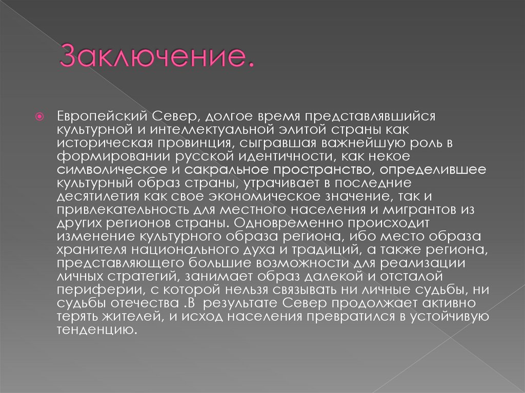Европейский Север, долгое время представлявшийсякультурной и интеллектуальной элитой страны как