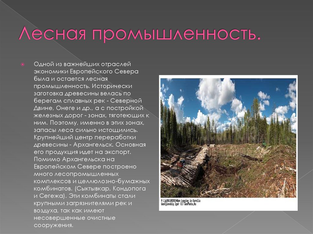 Одной из важнейших отраслейэкономики Европейского Севера