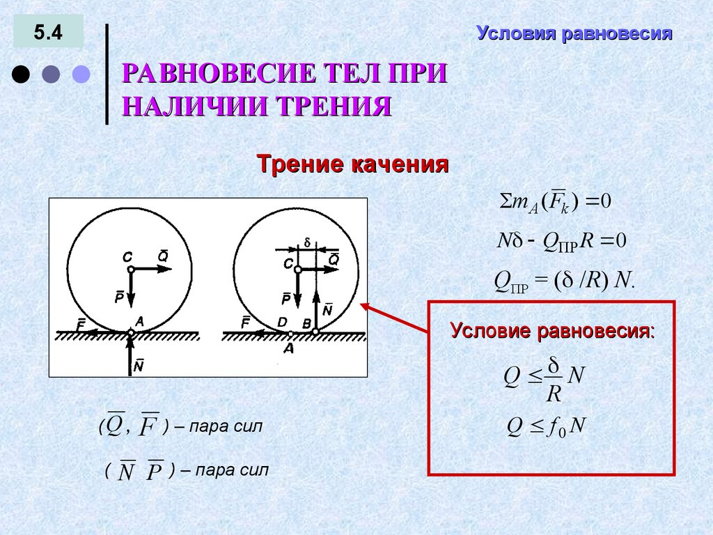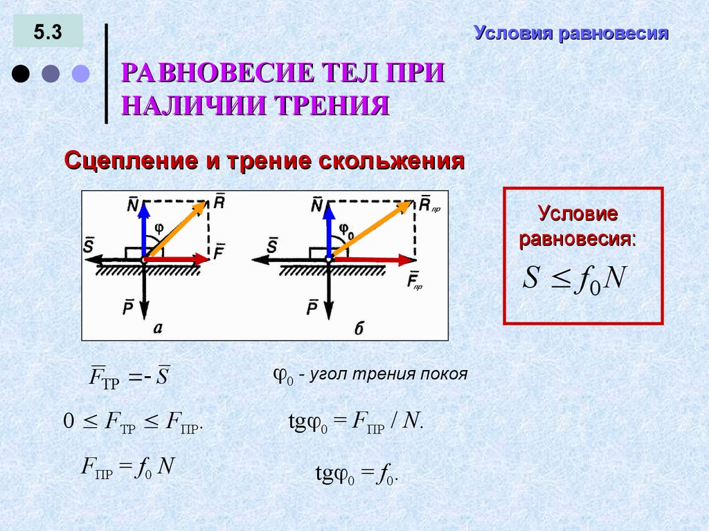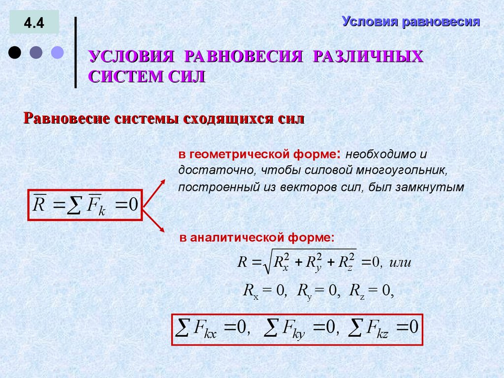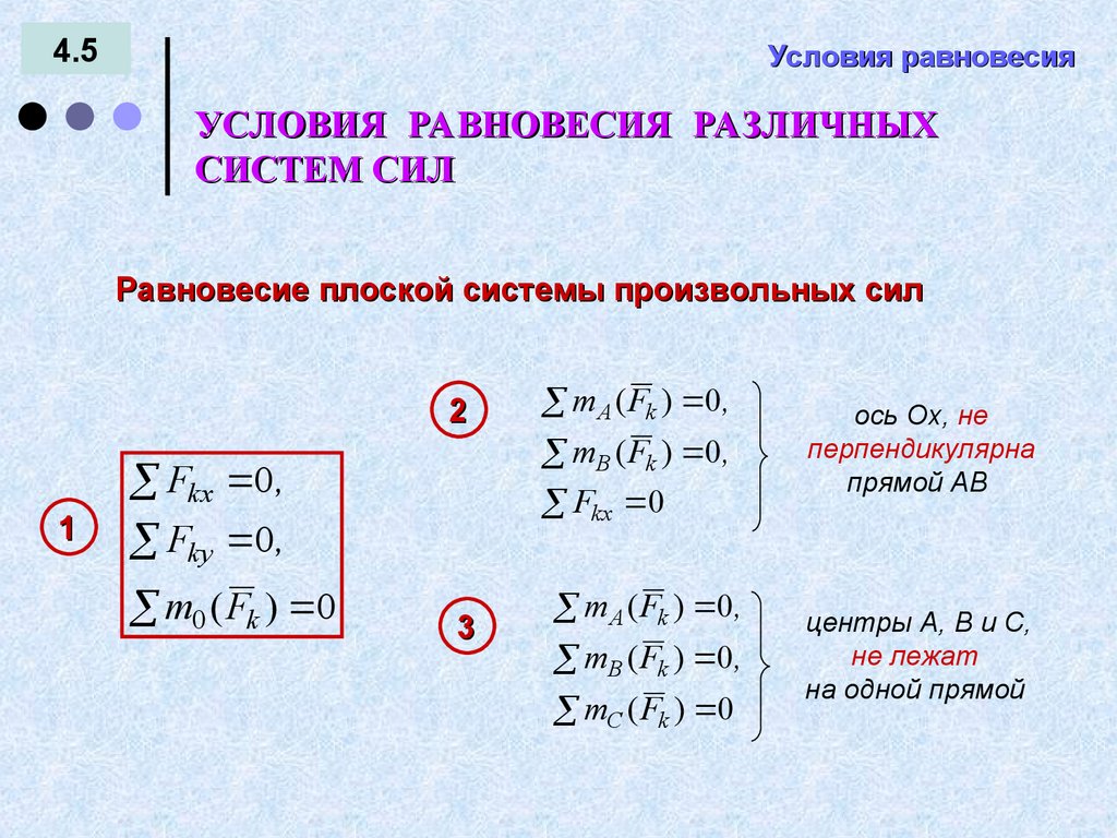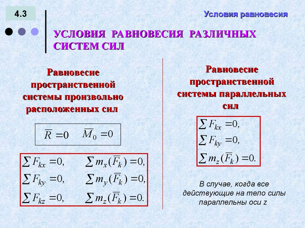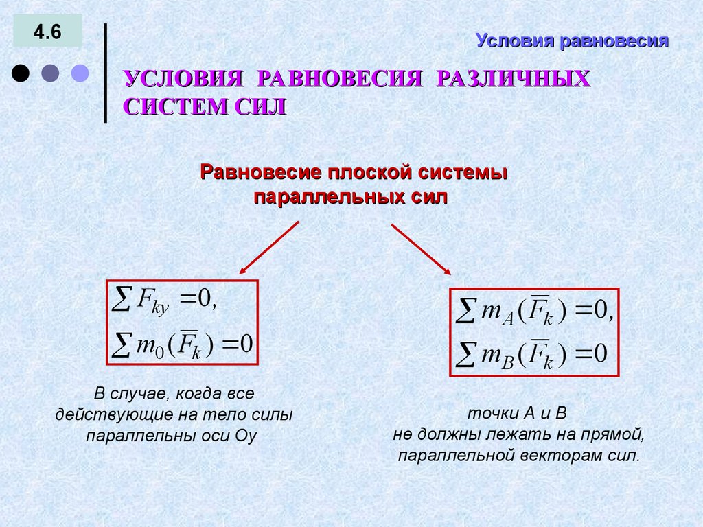 УСЛОВИЯ РАВНОВЕСИЯ