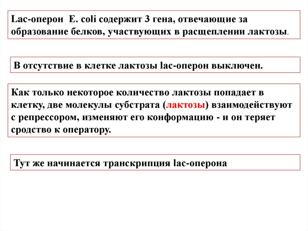 В отсутствие в клетке лактозы lac-оперон выключен.