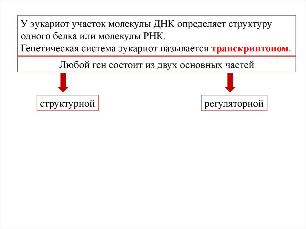 У эукариот участок молекулы ДНК определяет структуруодного белка или молекулы РНК.