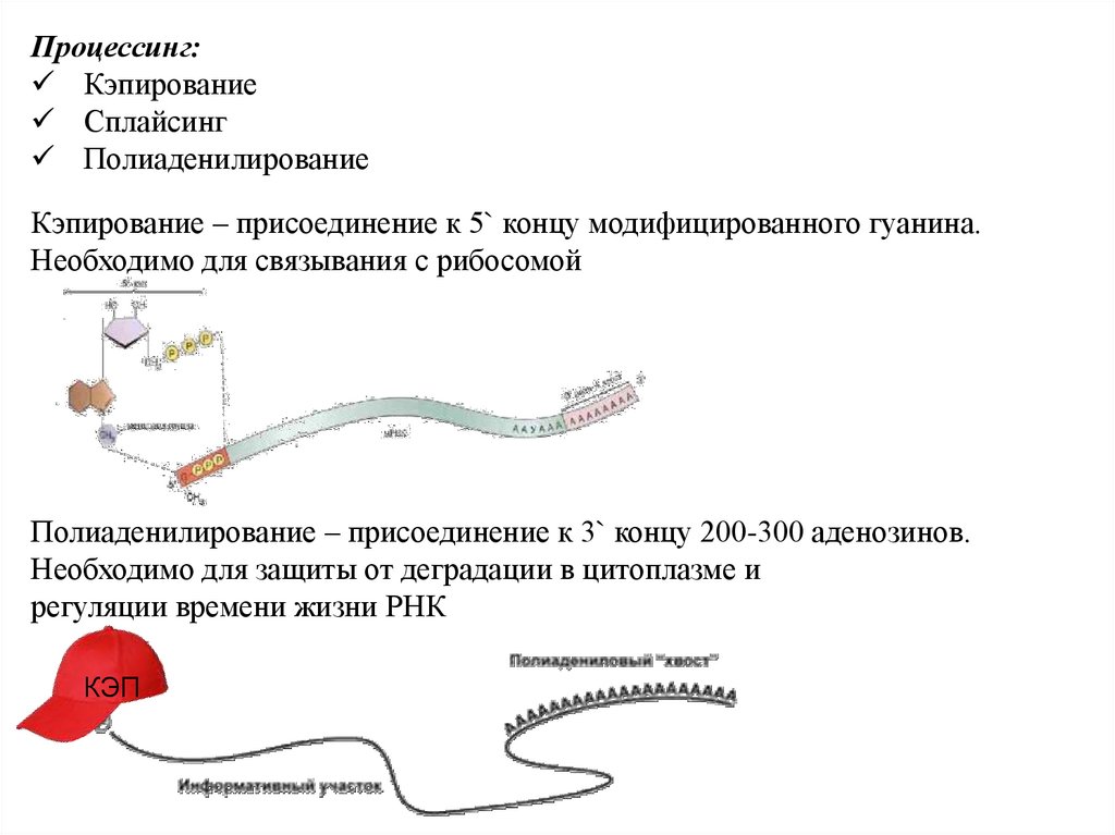 Полиаденилирование – присоединение к 3` концу 200-300 аденозинов.