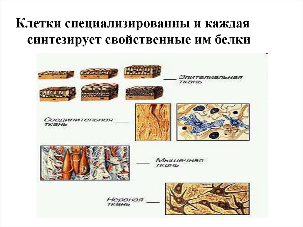 Клетки специализированны и каждаясинтезирует свойственные им белки