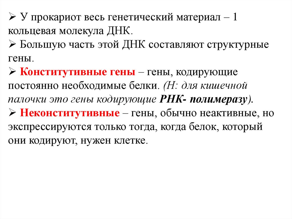 У прокариот весь генетический материал – 1кольцевая молекула ДНК.