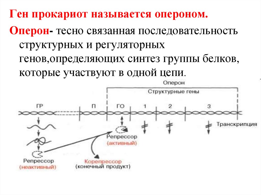 Ген прокариот называется опероном.Оперон- тесно связанная последовательность