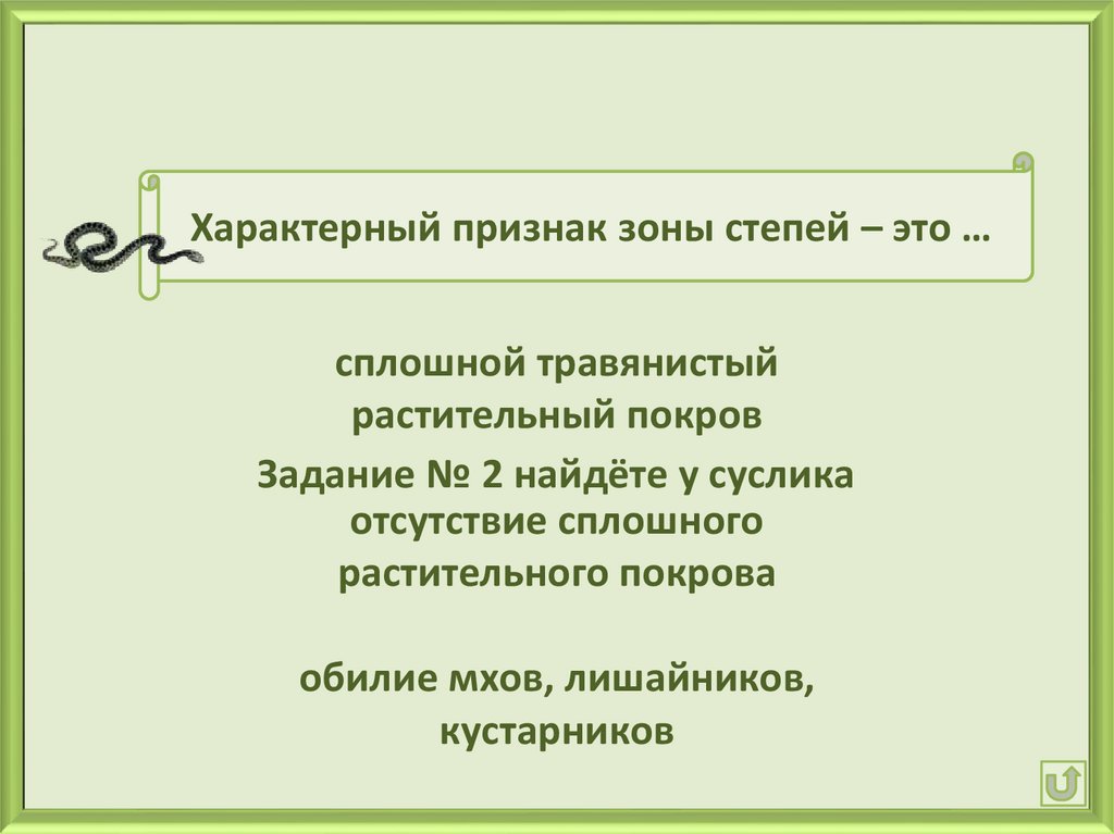 Характерный признак зоны степей – это …сплошной травянистый