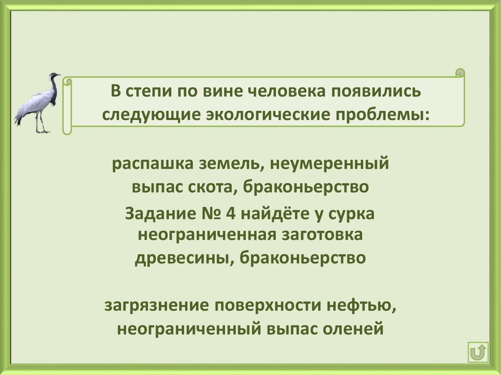 В степи по вине человека появилисьследующие экологические проблемы: