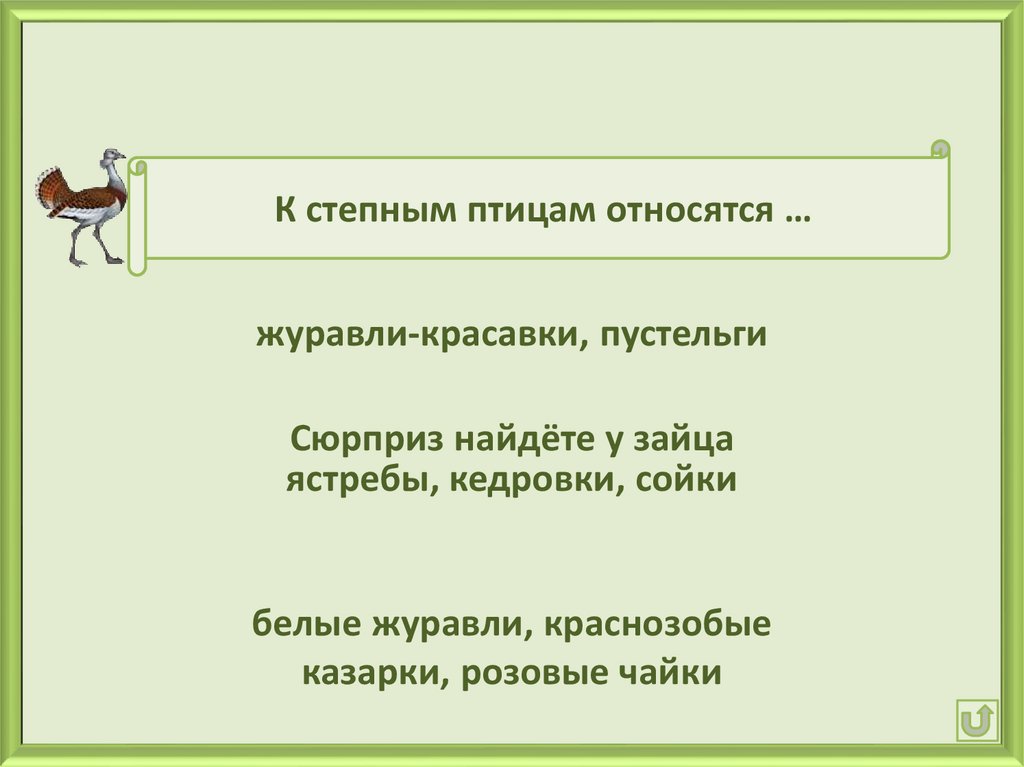 К степным птицам относятся …журавли-красавки, пустельги