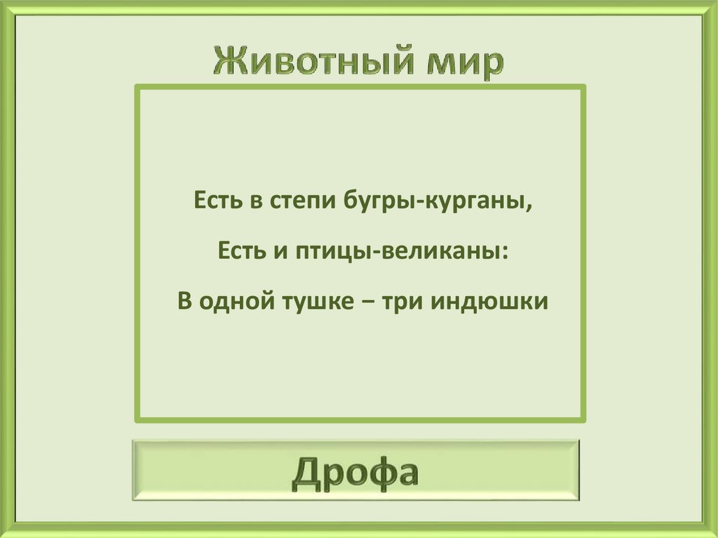 Есть в степи бугры-курганы,Есть и птицы-великаны: