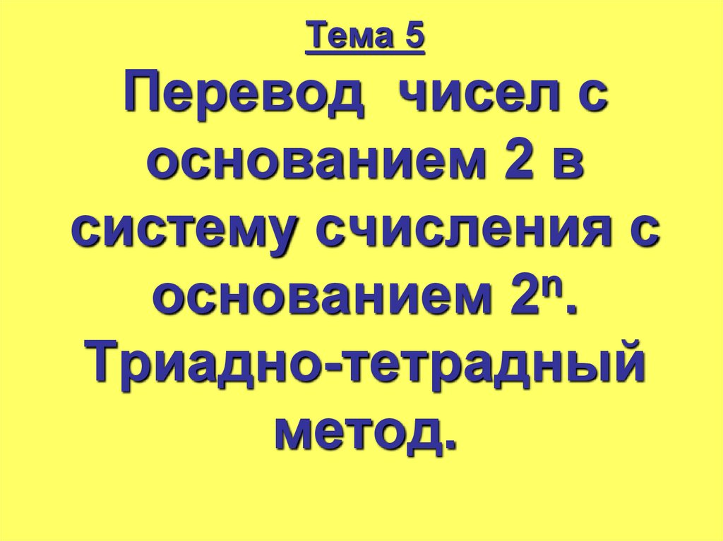 1. Тема 5 Перевод чисел с основанием 2 в систему счисления с основанием 2n. Триадно-тетрадный метод.