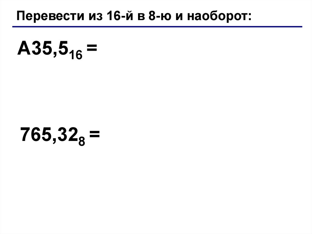 Перевести из 16-й в 8-ю и наоборот:A35,516 =
