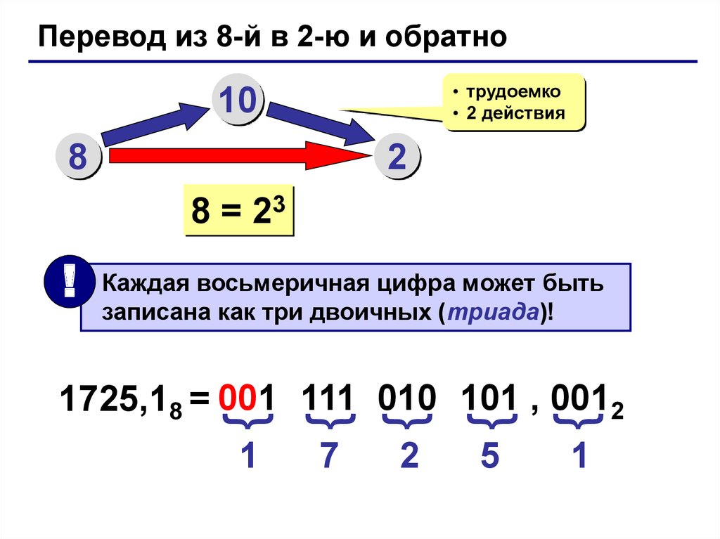 Перевод из 8-й в 2-ю и обратно• трудоемко