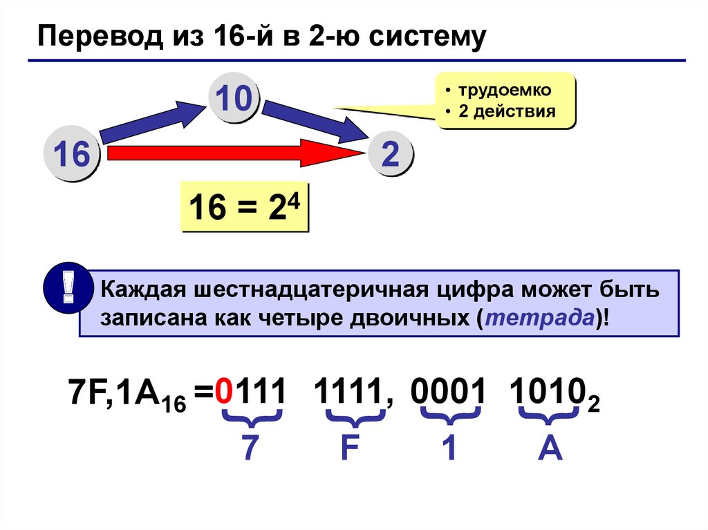 Перевод из 16-й в 2-ю систему• трудоемко