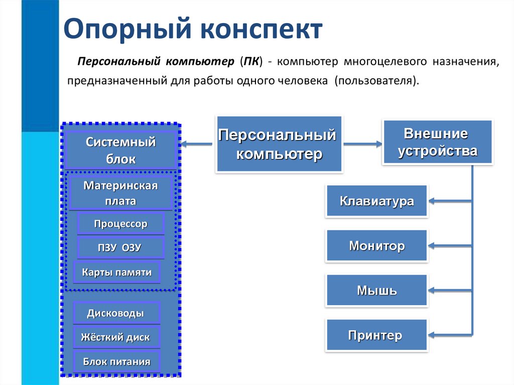 Опорный конспектПерсональный компьютер (ПК) - компьютер многоцелевого назначения,