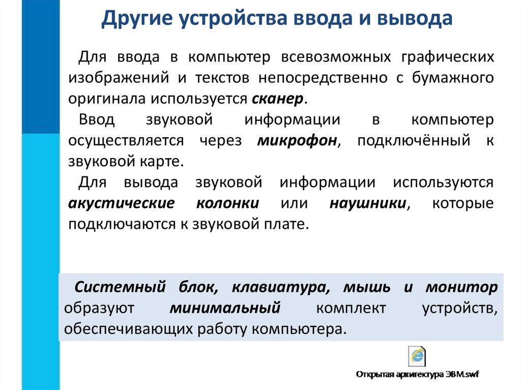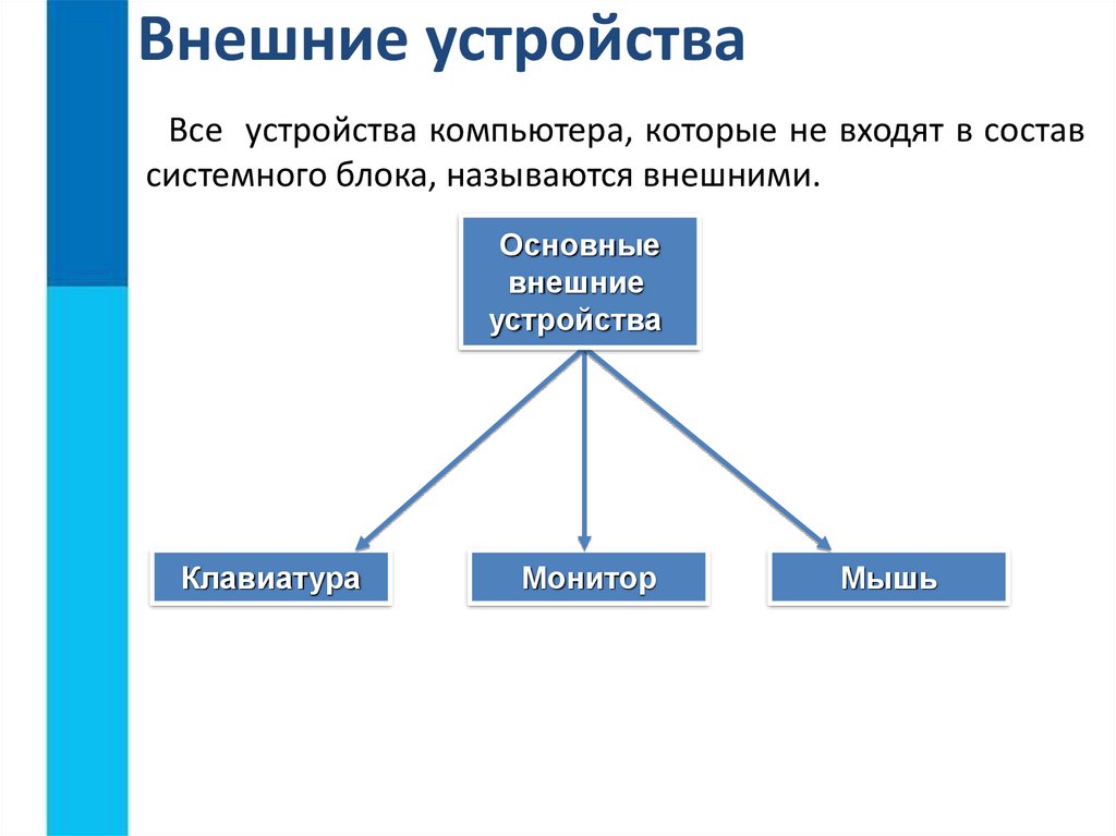Внешние устройстваВсе устройства компьютера, которые не входят в состав