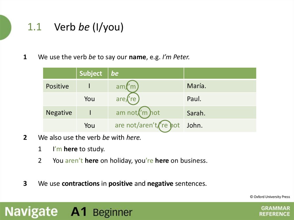 We use the verb be to say our name, e.g. I’m Peter.