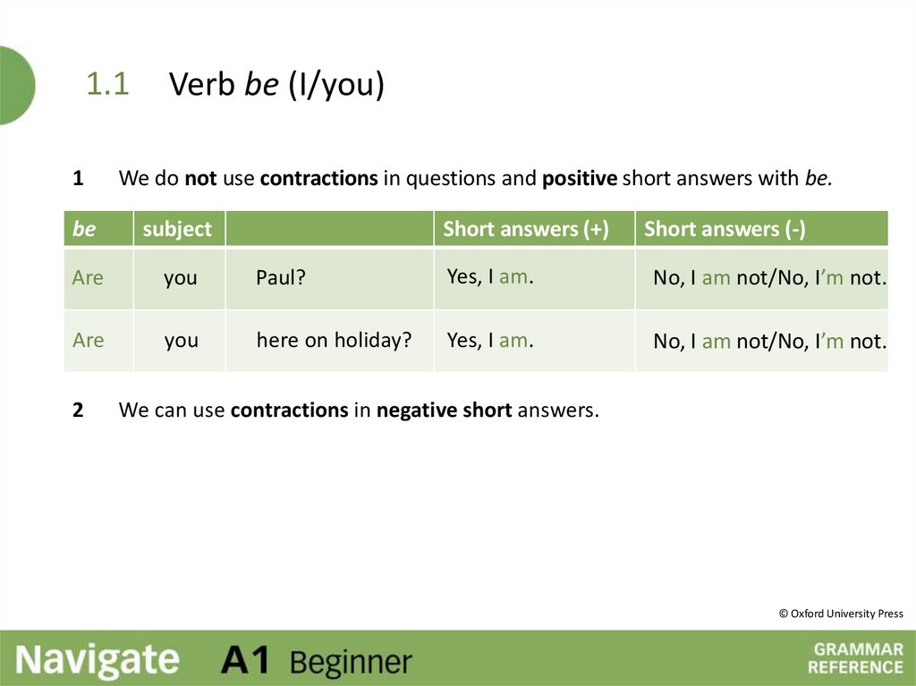 We can use contractions in negative short answers.