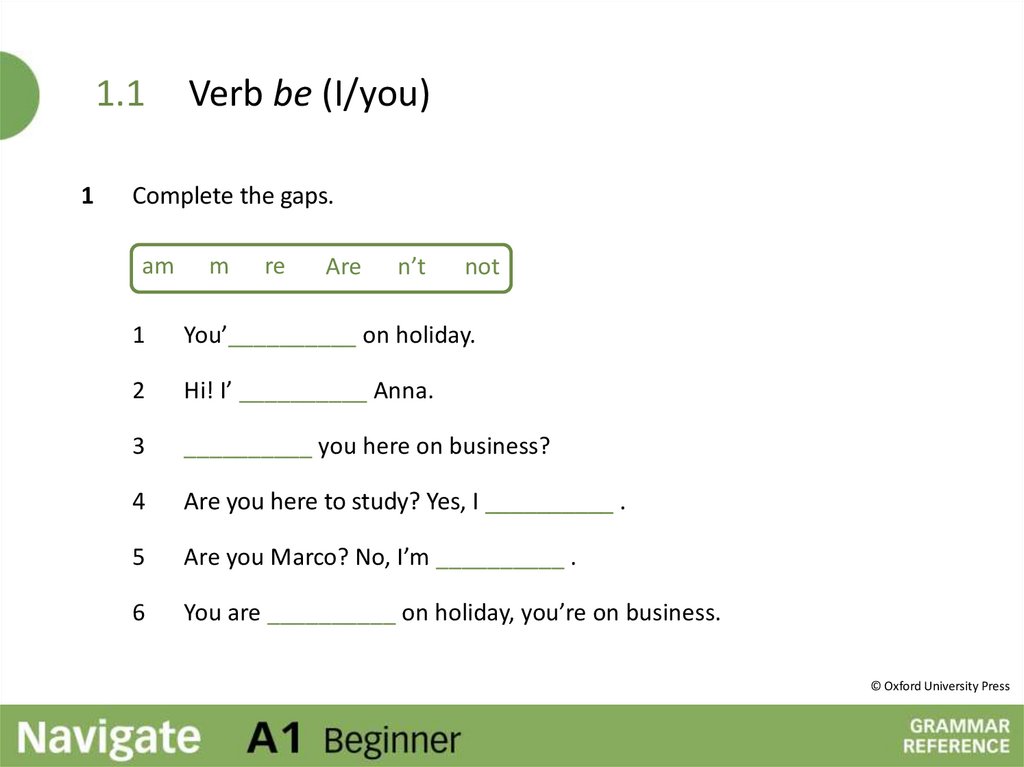 Verb be (I/you)