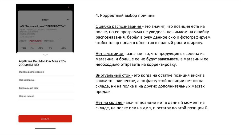 4. Корректный выбор причиныОшибка распознавания - это значит, что позиция есть на