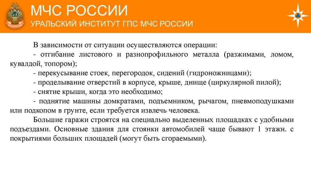 В зависимости от ситуации осуществляются операции:- отгибание листового и разнопрофильного металла (разжимами, ломом,