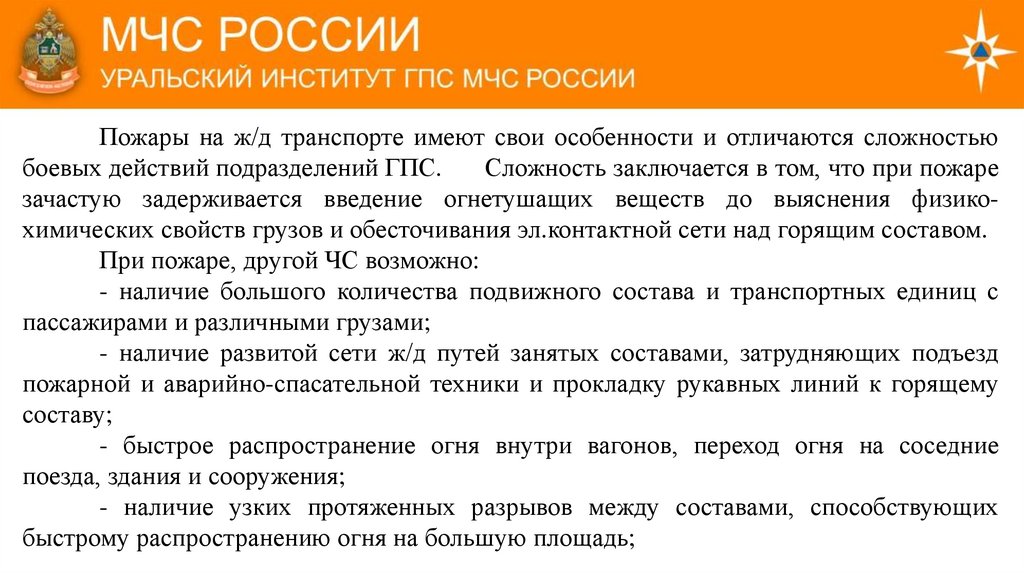 Пожары на ж/д транспорте имеют свои особенности и отличаются сложностьюбоевых действий подразделений ГПС.